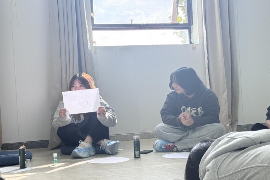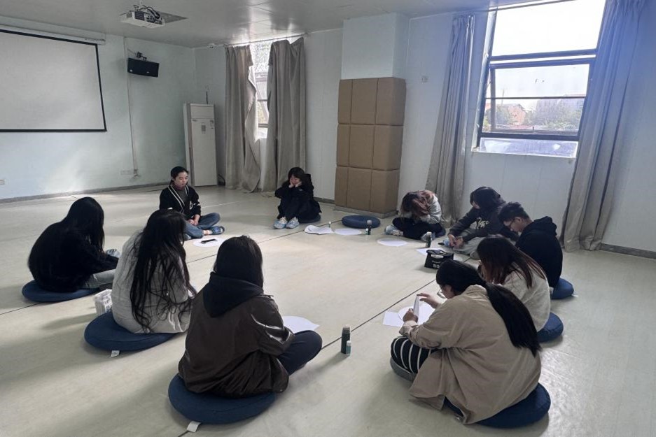 放松环节结束后,老师为每位同学分发了两种纸——普通卡纸和一张特殊的圆形卡纸。她轻声地问同学们“刚才在音乐中,脑海里浮现出了什么念头?”同学们陆续开口,有人坦言“突然很想家”,有人倾诉“最近压力很大,心里藏着一些伤心的事”,也有人担忧“即将到来的考试和堆积如山的作业”。面对这些坦诚的表达,老师温柔地回应:“所有情绪都是被允许的。”
