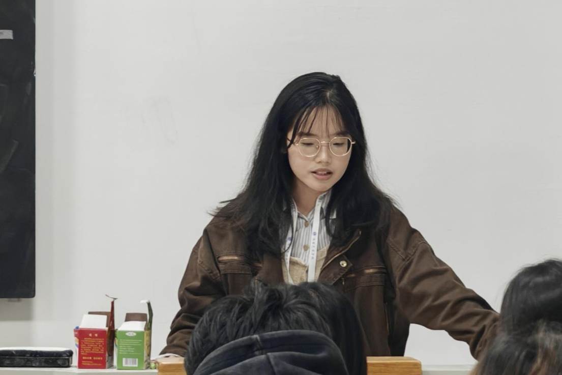 会议第一项,工作站介绍。副会长赵思颖作为主席团代表发言。她从工作站宗旨出发,简要介绍了工作站的核心职能与发展理念。她表示,工作站会定期开展专项工作培训,助力新干事快速熟悉工作流程、提升专业技能。此外,工作站成员要始终严守安全伦理底线与保密原则,不断强化责任意识,筑牢学生隐私保护防线,为提升学院学生的心理健康素养、增进大家的幸福感保驾护航。