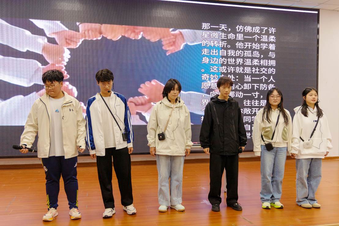 演绎结束,王丹老师做总结发言。她首先肯定了工作人员与参演同学的辛勤付出,随后结合活动主题对学子们提出三点期望:一是敞开心扉、携手同行,将互联网作为沟通桥梁而非情感围墙;二是认识自我、重视价值,善于发现自身闪光点,不因人际好坏否定自己;三是接纳自我、拥抱不完美,不活在他人期待中,绽放真实魅力。愿同学们都能“敢于面对困惑”、“学会在脆弱中成长”。