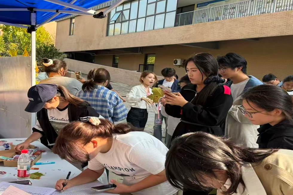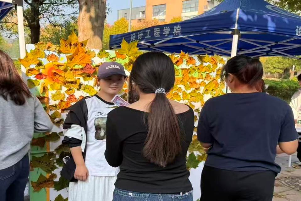 在秋意渐浓的校园氛围中,为引导同学们舒缓学业压力、强化自我觉察,2025年11月5日,设计工程学院艺心心理工作站精心组织了“一叶寄情,心愿打卡”主题活动,本次活动以自然落叶为载体,聚焦情绪疏导与心灵滋养,是学院心理育人工作的一次创新实践,活动当天,约600名同学踊跃参与其中,积极投身各项线下互动环节。此次活动不仅为校园生活注入了温暖活力,更有效助力同学们心理健康的良好发展,让大家在紧张忙碌的学习生活之余,重新发现并拾起那些曾被忽略的美好瞬间,为校园文化建设增添了积极向上的氛围。