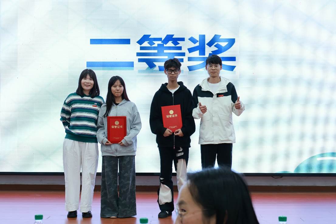 点评结束后,评委老师对参赛队伍进行颁奖,其中数媒2506班的《走出虚拟风暴》荣获一等奖,由设计工程学院党总支副书记唐林丽老师颁奖。