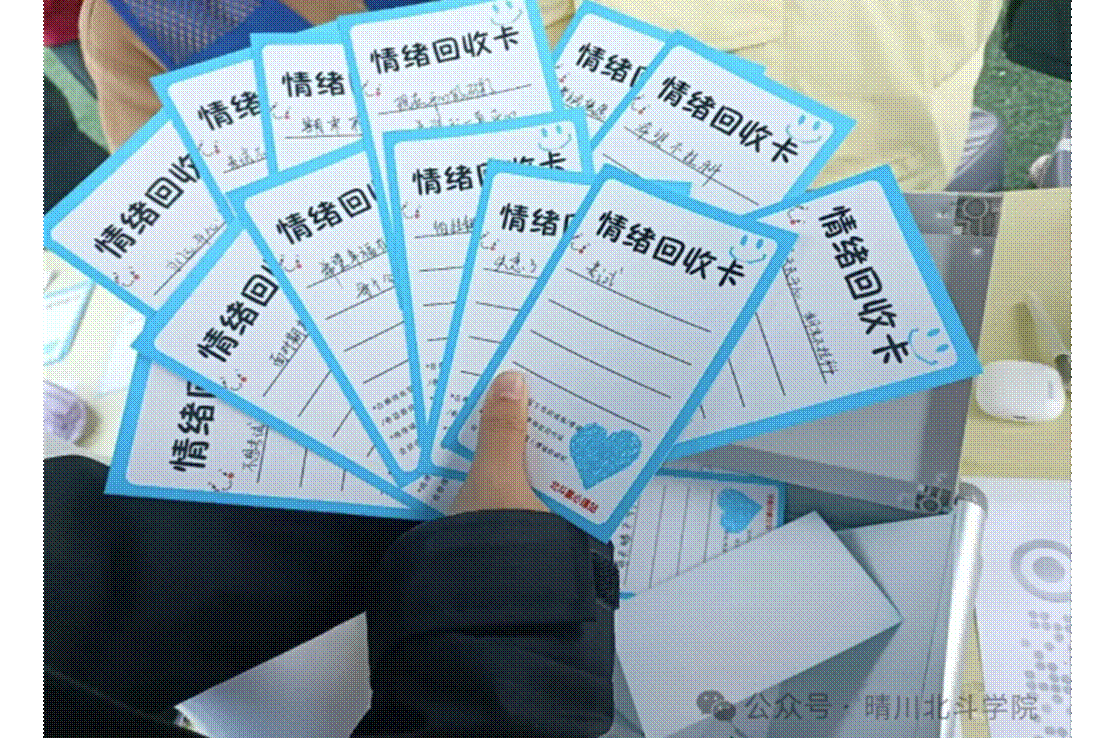 活动伊始,心理工作站的志愿者们提前到场布置场地,将操场装点得活力满满。在活动开始之前有一个情绪倾诉时刻:同学们领取情绪卡片或者明信片,写下近期的压力与烦恼,投入“情绪回收箱”,把心事悄悄“打包”送走, 完成后可获得第一枚印章。